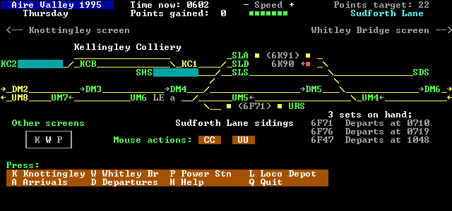 You are responsible for all traffic in the area. Due to mining subsidence, much of the route is of a low speed limit, often as low as 20 mph. This means that there is little difference in running times between different train types.