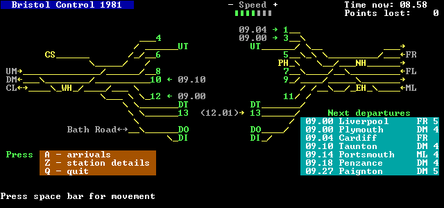 The station is seen on a Saturday in summer 1981. A number of relief passenger services operate only depending on the traffic available. You have to direct all the trains in and out, selecting platforms to avoid delays and minimise congestion. You will have to plan how to use the available platforms to avoid conflicts between arrivals and departures, and adjustments will be needed when arrivals are running late.