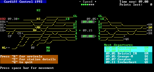 The station is seen on a summer weekday in 1992. Most freight and a number of relief passenger services operate only depending on the traffic available. You have to direct all the trains in and out, selecting platforms to avoid delays and minimise congestion. You will have to plan how to use the available platforms to avoid conflicts between arrivals and departures, and adjustments will be needed when arrivals are running late.
