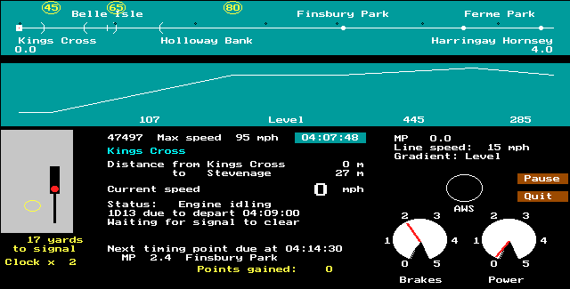 This simulation covers the first 76 miles or so of the East Coast Main Line, home of the "Flying Scotsman", "Elizabethan" and other famous trains. The section covered is that from the London terminus at Kings Cross to the station at Peterborough, where several of the principal trains call to interchange traffic with Regional Railways cross-country services. A choice of schedule and motive power is provided, representing operations on the route in 1991.