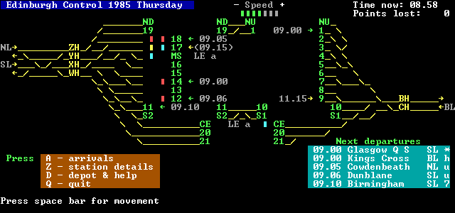 The station is seen on a summer weekday in 1985. Most freight and a number of relief passenger services operate only depending on the traffic available. You have to direct all the trains in and out, selecting platforms to avoid delays and minimise congestion. You will have to plan how to use the available platforms to avoid conflicts between arrivals and departures, and adjustments will be needed when arrivals are running late.