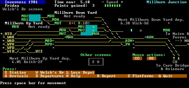 You are responsible for all traffic in the area from Millburn Junction in the east to just west of Inverness station in the west, a distance of about 2 miles. Within this area there is little chance for high speeds, so in this simulation all movements are broadly the same speed.