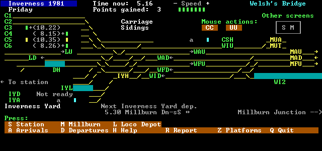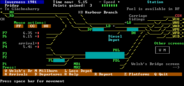 You have to direct all the trains into, through and out of the area, selecting platforms and yard tracks to avoid delays and minimise congestion; you also have to manage the diesel depot, and ensure that locomotives are refuelled and that each train has suitable motive power.