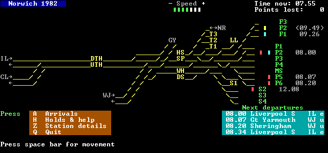 The station is seen on a summer Saturday in 1982. There was little freight running in East Anglia on Saturdays; just one departmental train may run depending on the traffic available. You have to direct all the trains in and out, selecting platforms to avoid delays and minimise congestion. You will have to plan how to use the available platforms to avoid conflicts between arrivals and departures, and adjustments will be needed when arrivals are running late.