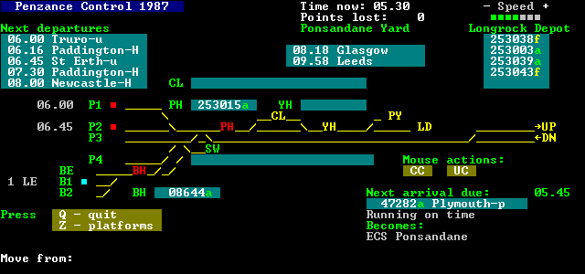 You have to direct all the trains in and out, selecting platforms to avoid delays and minimise congestion; you also have to manage the motive power depot at Longrock, a mile up the line, and ensure that locomotives and units are refuelled and serviced and that each train has suitable motive power.